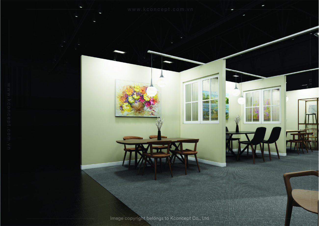 Đây là bước quan trọng để hiện thực hóa ý tưởng. Kconcept sử dụng công nghệ 3D Rendering hiện đại để tạo ra hình ảnh phối cảnh sống động, chân thực đến từng chi tiết về màu sắc, ánh sáng, vật liệu và cách bố trí nội thất. Khách hàng có thể hình dung rõ ràng gian hàng của mình sẽ trông như thế nào sau khi hoàn thiện.