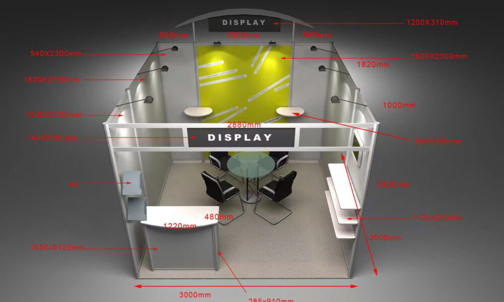 Gian hàng 9m² thường gặp ở hội chợ tiêu chuẩn (standard booth).