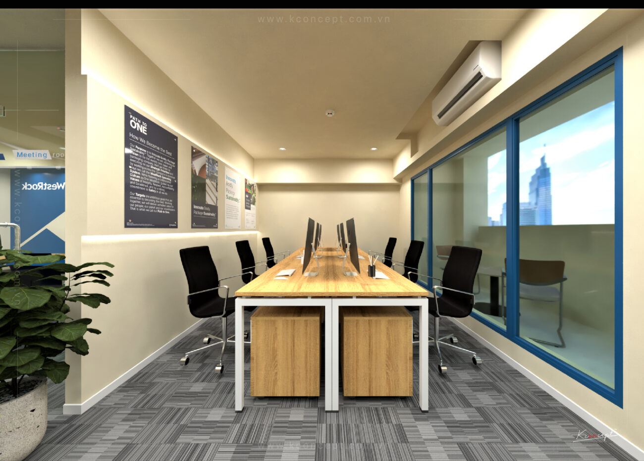Đặc biệt, Kconcept đã hoàn thành xuất sắc dự án thiết kế thi công văn phòng WESTROCK VIETNAM với diện tích hơn 100m2. Dự án này là một ví dụ điển hình về cách chúng tôi biến một không gian rộng lớn thành môi trường làm việc hiện đại, tiện nghi, tối ưu hóa sự hợp tác và năng suất. Chúng tôi đã chú trọng vào việc tạo ra các khu vực làm việc mở, khu vực họp linh hoạt và các không gian thư giãn, đảm bảo đáp ứng đầy đủ nhu cầu của một công ty quy mô lớn, mang lại sự thoải mái và truyền cảm hứng cho nhân viên.