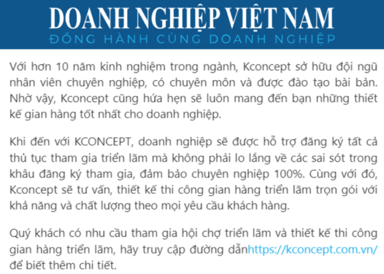 Nếu doanh nghiệp đang tìm một đơn vị thiết kế thi công gian hàng triển lãm Beauty Care Expo Vietnam – HCMC – Triển lãm Quốc tế về Sản phẩm, Công nghệ và Dịch vụ Làm đẹp trọn gói, chất lượng, liên hệ ngay với Kconcept để được hỗ trợ tư vấn các dịch vụ thiết kế thi công uy tín chất lượng nhất.